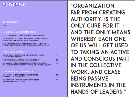 The first reader is a collection of texts on the topic of accountability in organising spaces. What does accountability mean in community and political organising?